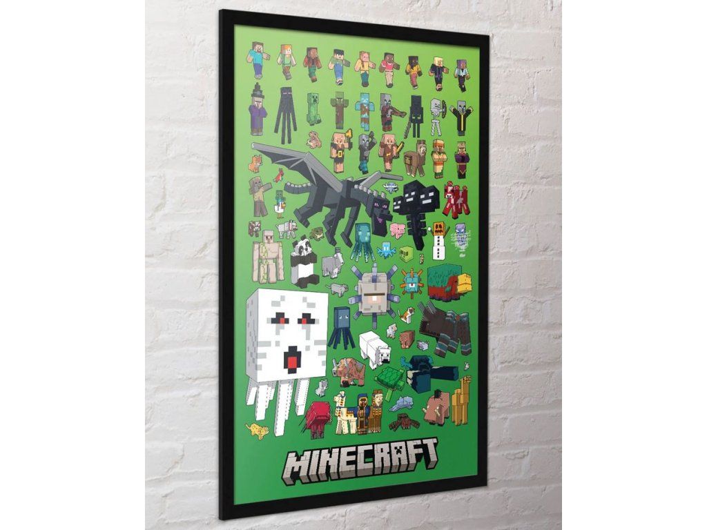 Plakát s grafikou seznamu postav z počítačové hry Minecraft.