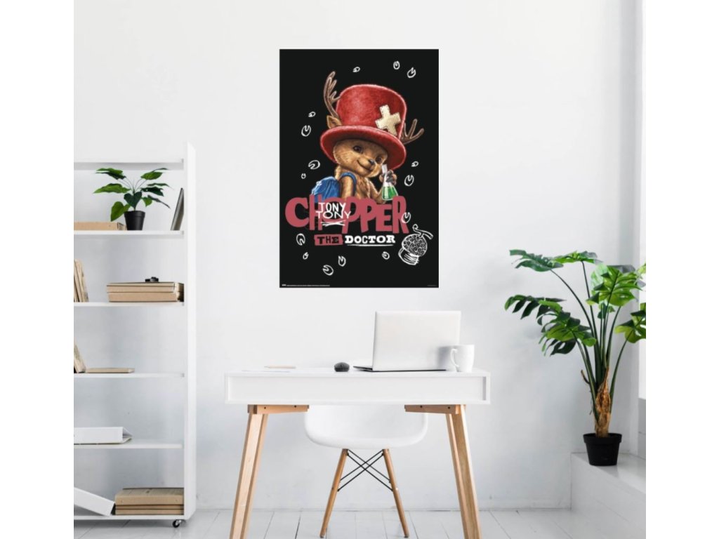 Stylový plakát s motivem Tonyho Tonyho Choppera z oblíbeného anime světa One Piece oživí každý pokoj fanouška dobrodružství na širém moři. Roztomilý lodní doktor s ikonickým kloboukem a batohem v ruce drží laboratorní baňku, což dokonale vystihuje jeho jedinečný charakter. Plakát si můžete zarámovat a vytvořit si tak originální stylový obraz, případně volně pověsit na zeď, skříň, dveře, prostě kdekoliv vás napadne. Skvěle oživí každou místnost a dodá jí hravou atmosféru.