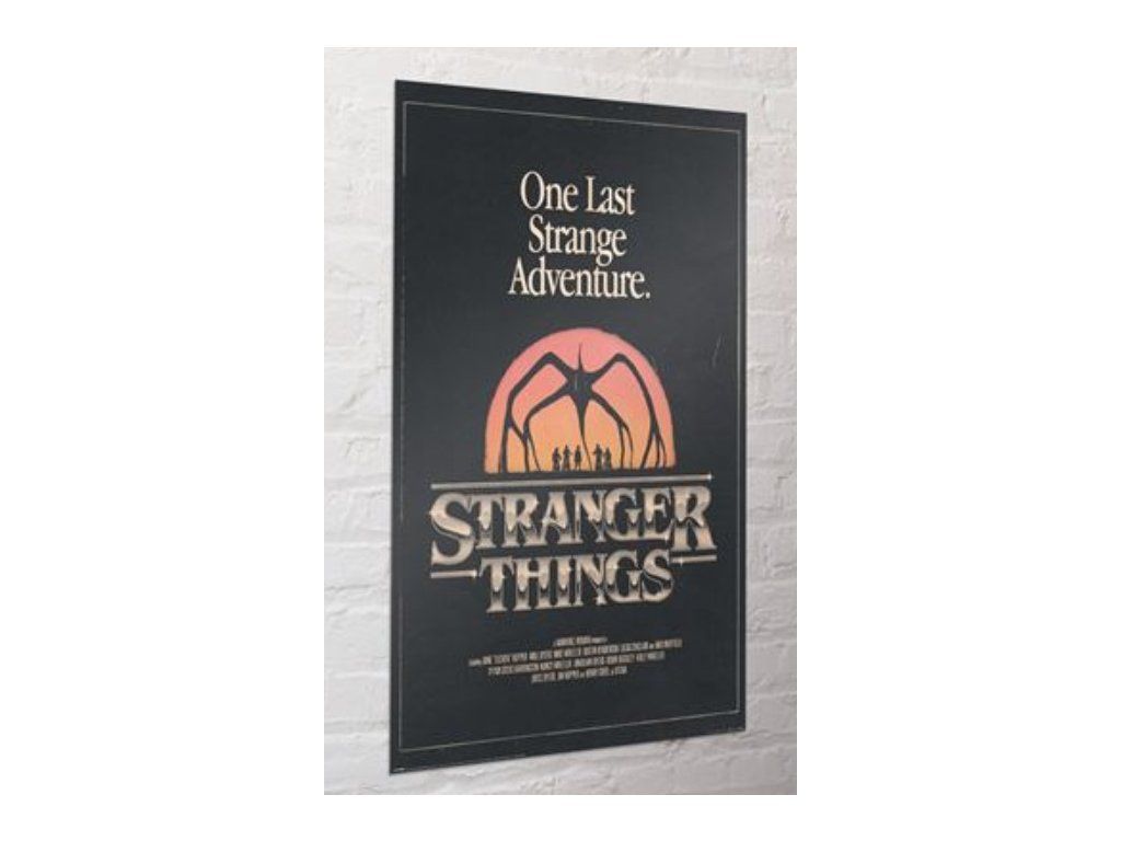 Ikonický plakát s podtitulem "One Last Strange Adventure" oslavuje závěrečnou kapitolu fenoménu Stranger Things. Designu dominuje hrozivá silueta Mind Flayera nad zapadajícím sluncem, pod kterým se tyčí drobné postavy našich hrdinů připravených na poslední bitvu. Plakát, který byl vydán k završení celého příběhu, zachycuje nostalgii i napětí, které provázelo loučení s Hawkins. Plakát je ideální dekorací do pokoje, herního koutku, pracovny nebo obývacího prostoru. Skvěle se hodí pro fanoušky seriálu.
