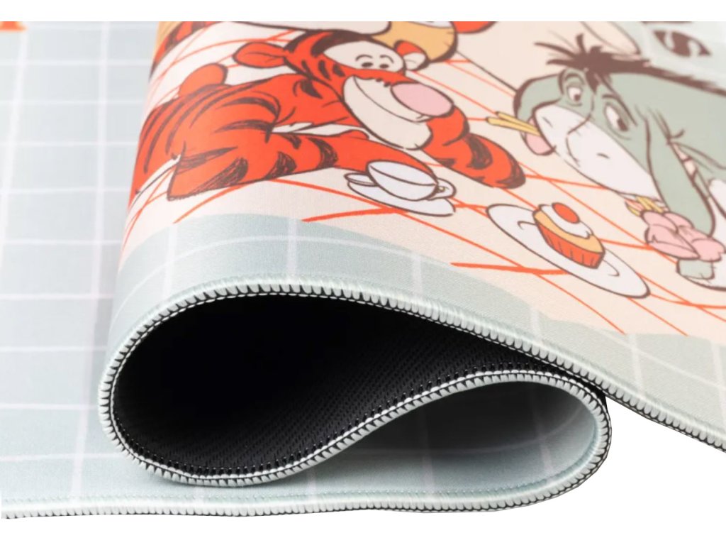 Herní podložka na stůl s grafikou Medvíka Pů a jeho přátel. Textilní povrch s vysokou hustotou, optimální pro intenzivní a přesné používání s jakýmkoli typem myši. Podložka je voděodolná, má zesílené okraje a protiskluzovou gumovou základnu. Podložka je vhodná taky pro ochranu povrchu stolů či lavic.