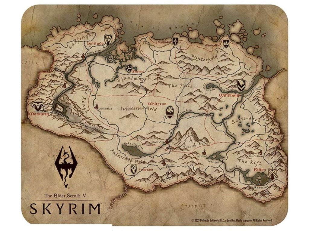 Z východu na západ, přes hory a údolí nikdy neztratíte cestu královstvím Skyrim s touto flexibilní podložkou pod myš. Tato podložka pod myš s protiskluzovou základnou a s grafikou mapy Skyrim je nutností každého fanouška této videohry a nesmí tak chybět na žádném herním, či pracovním stole.