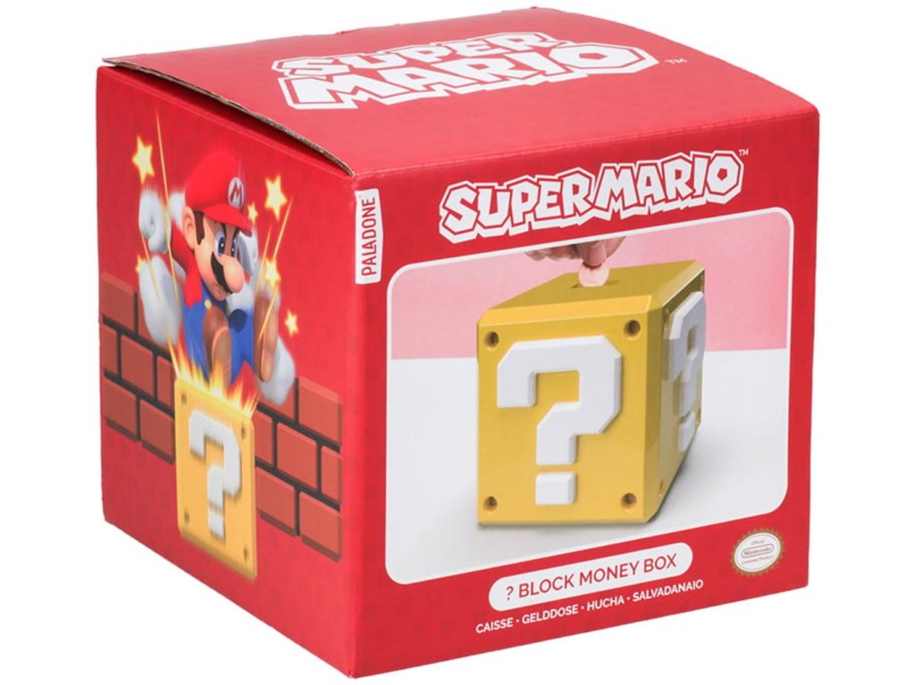Oficiální produkt - pokladnička z katalogu výrobkůl s grafikou a licencí populární fantasy videoherní série Super Mario.