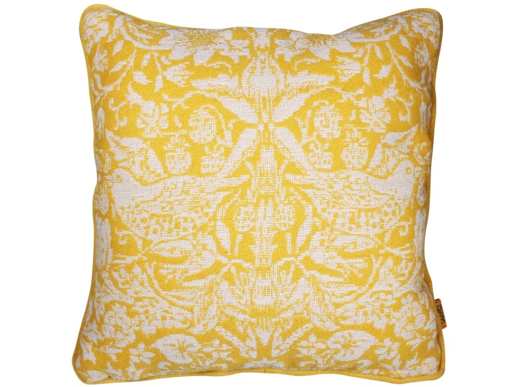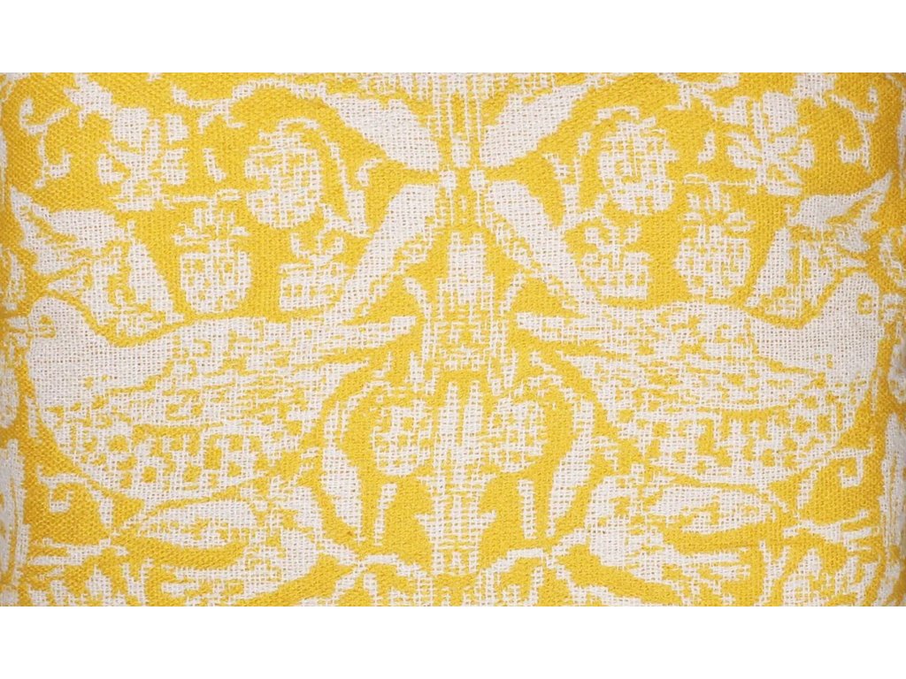 Elegantní dekorativní polštář s bohatým přírodním motivem inspirovaným tvorbou Williama Morrise vnese do interiéru nadčasovou eleganci a jemný nádech umění. Výrazný žlutý podklad doplňuje světlejší ornamentální vzor s ptáky, květinami a proplétanými rostlinnými detaily, které vytvářejí harmonický a sofistikovaný celek. Polštář je vyroben ze 100% recyklovaného polyethylentereftalátu (rPET) - ekologického materiálu vzniklého recyklací PET lahví a obalů. Spojuje tak estetiku s udržitelným přístupem k výrobě. Je příjemný na dotek, odolný a vhodný jako stylový doplněk do obývacího pokoje i ložnice.