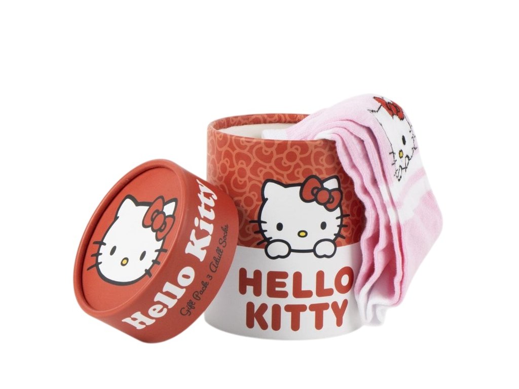Oficiální produkt - dárkový set dámských ponožek a doplňkové zboží z katalogu zboží s grafikou a licencí fiktivní kreslené postavičky Hello Kitty.