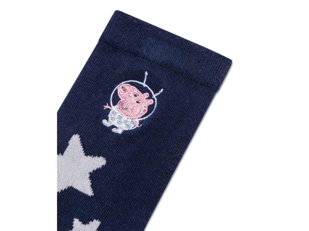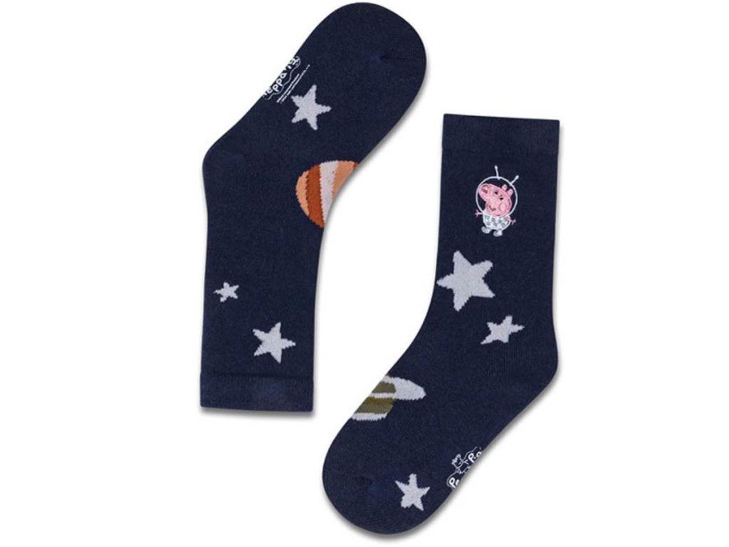 Dětské černé ponožky s grafikou seriálové postavy Prasátka Pepy s vesmírným pozadím. Pohodlné ponožky jsou měkké, pružné a galakticky roztomilé pro všechny malé i velké fanoušky.