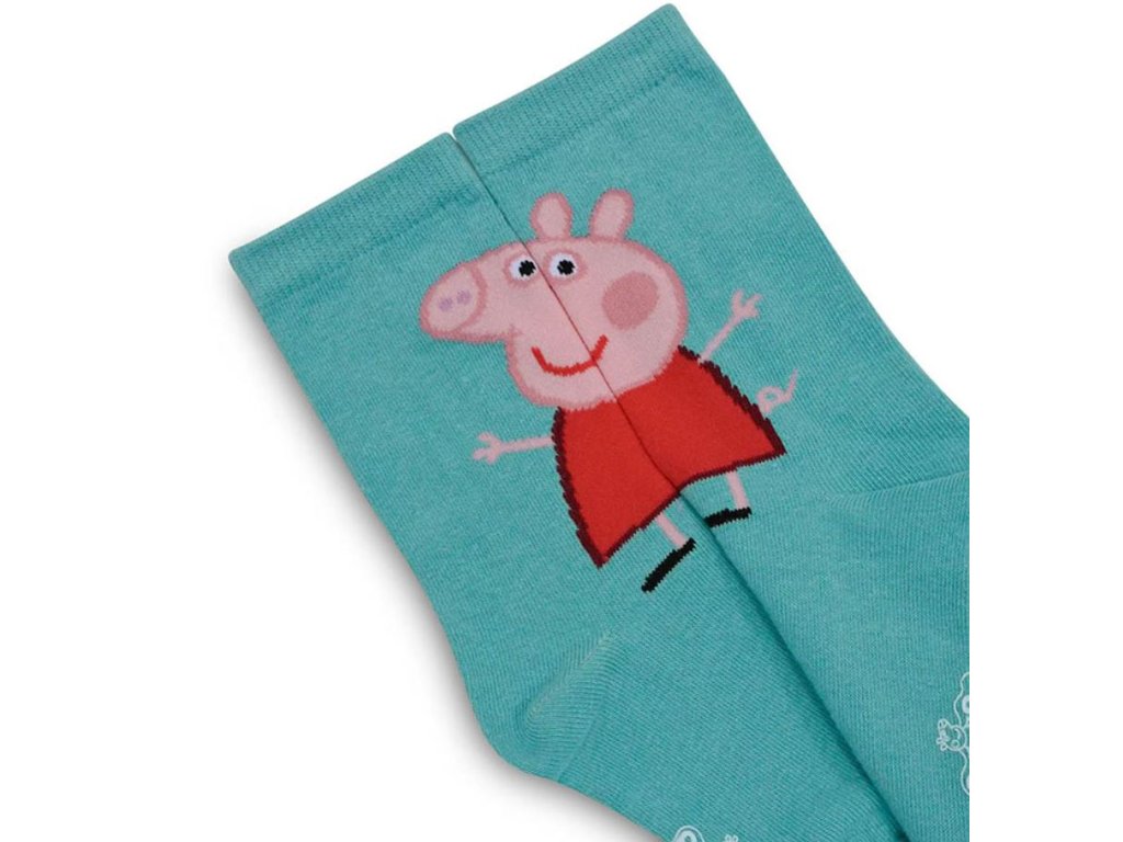 Dětské zelené ponožky s grafikou seriálové postavy Prasátka Pepy a jejím charakteristickým úsměvem. Pohodlné ponožky jsou měkké, pružné a roztomilé pro všechny malé i velké fanoušky.