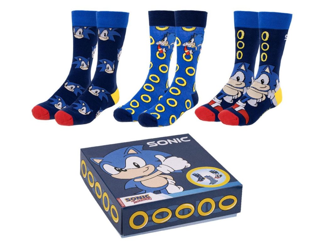 PONOŽKY PÁNSKÉ|SET 3 PÁRŮ|SONIC THE HEDGEHOG|VELIKOST EU 40-46