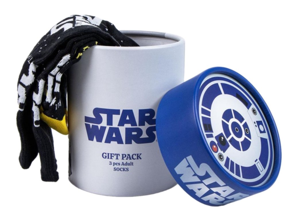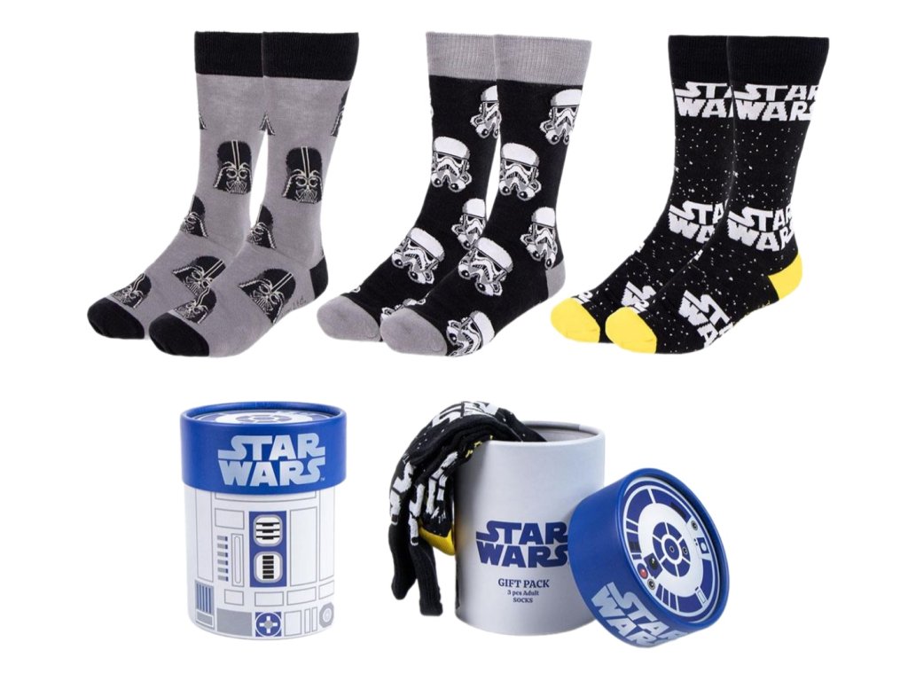 Dopřejte si naši dárkovou sadu ponožek Star Wars. Tato sada obsahuje tři páry ponožek s postavami Darthvader, Stormtrooper a nápisem Star Wars. Ponožky mají zesílené paty pro větší odolnost a jsou elegantně zabalené v designové dárkové krabičce, takže jsou perfektním dárkem pro vás nebo promyšleným dárkem pro každého nadšence série Star Wars.Ponožky jsou skvělým dárkem pro každého menšího i většího fanouška, protože jsou vyvedené v několika velikostních variantách, takže si můžete vybrat přesně ty, které vám nejlépe sednou.