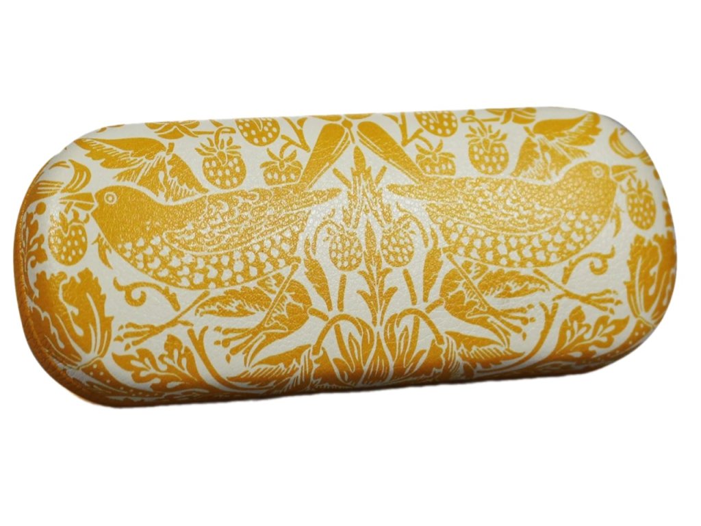 Bílo-žluté pouzdro na brýle s grafikou návrhu od slavného britského umělce Williama Morrise. Součástí pouzdra je i hadříček na čištění sklíček ve stejném designu. Uvnitř pouzdra najdete tkaninu, která se postará o pohodlí vašich brýlí. Pouzdro je vhodné pro všechny, kteří mají rádi umění a styl, nebo si jenom chtějí uschovat své brýle, jak už klasické, tak sluneční.