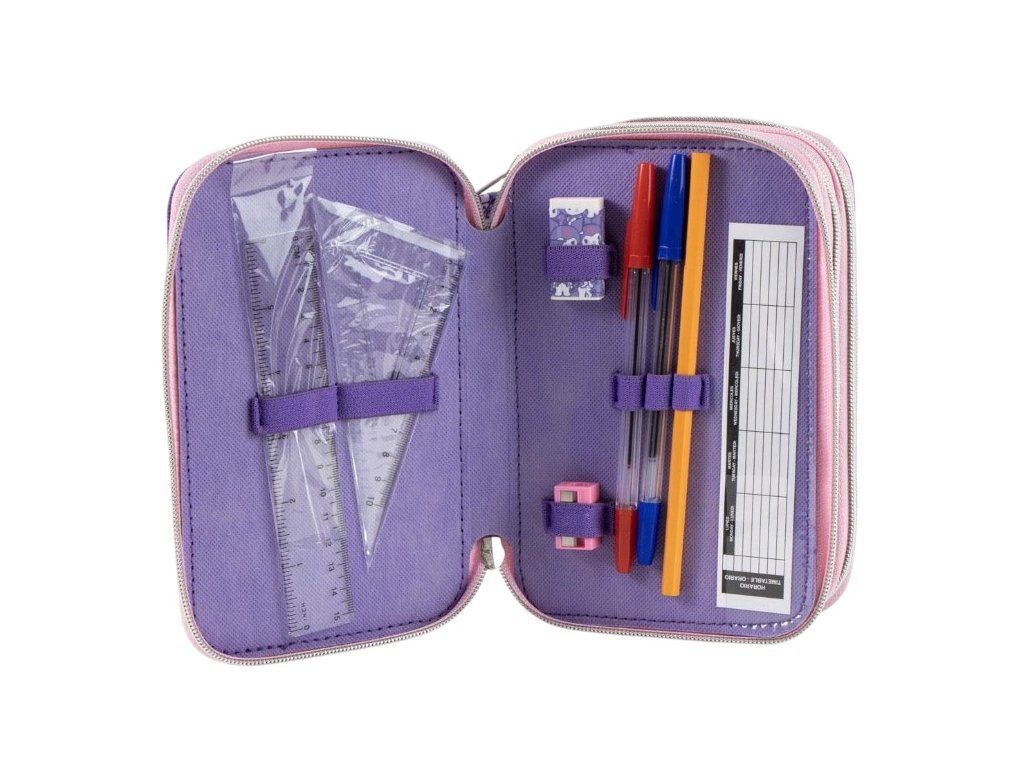 Praktické trojdílné školní pouzdro s motivem oblíbené kočičky Hello Kitty potěší každého malého fanouška roztomilosti. Na pouzdru najdete grafiku rebelské postavy Kuromi. Pouzdro má tři samostatné přihrádky se zapínáním na zip, díky kterým si děti snadno uspořádají všechny školní potřeby. Součástí je i základní školní výbava, takže je připravené rovnou do školy. Ideální doplněk do aktovky nebo skvělý dárek pro všechny fanoušky kočky Hello Kitty a jejich přátel.