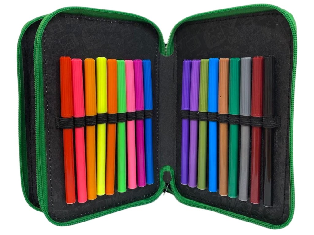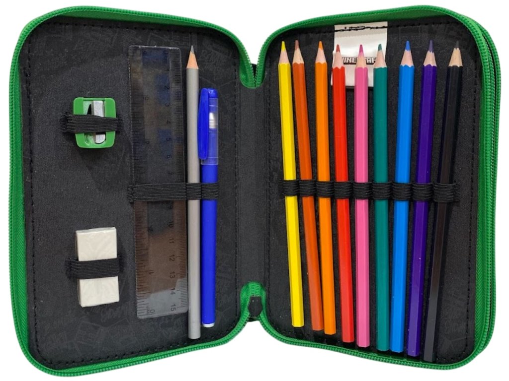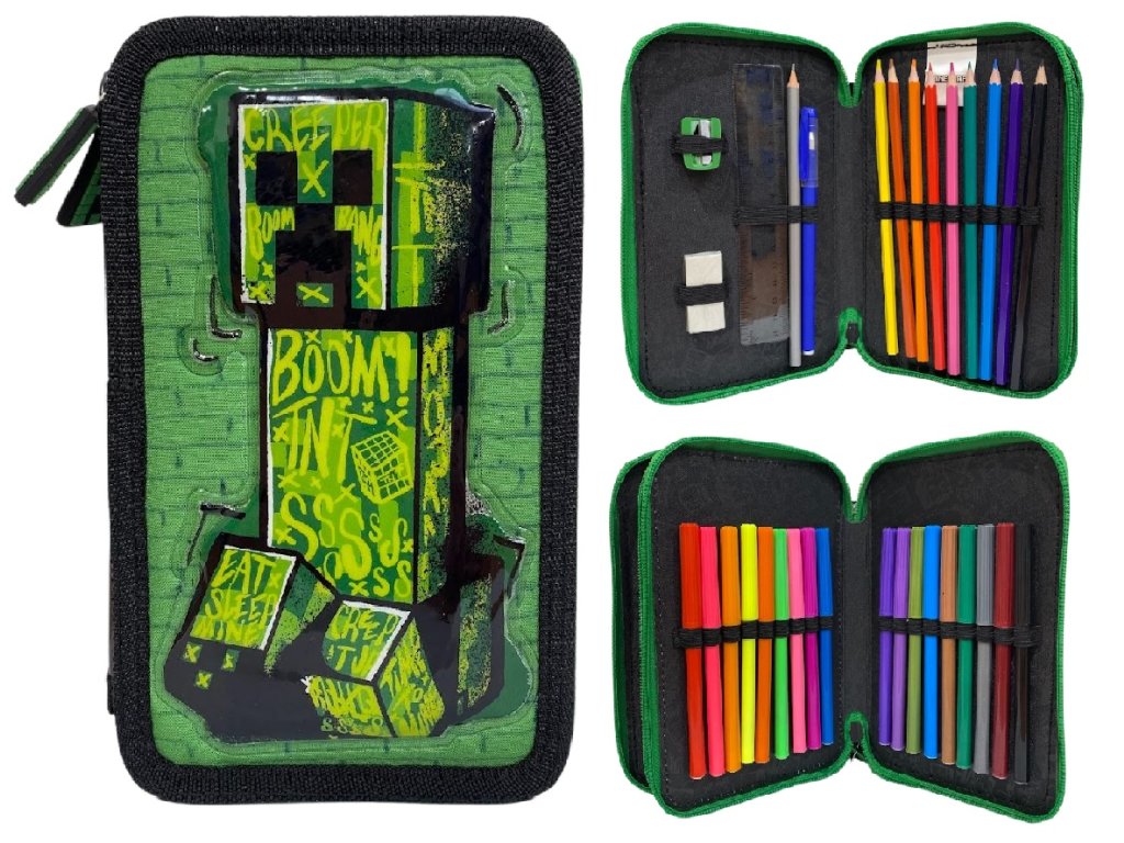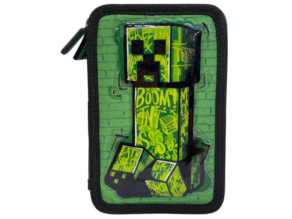 Tento školní pouzdro Minecraft s motivem Creepera je praktickým a stylovým doplňkem a navíc je plněné.. Je vyrobené z odolného polyesteru a jeho rozměry poskytují dostatek prostoru pro školní potřeby. Dvojdílné provedení nabízí lepší organizaci a přehlednost. Černá a zelená barevná kombinace dodává pouzdru výrazný vzhled.