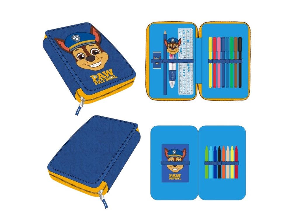 Praktické dvojité školní pouzdro s motivem oblíbeného seriálu PAW Patrol potěší každého malého fanouška psích hrdinů. Na pouzdru najdete grafiku statečného člena záchranářského týmu - policista Chase. Pouzdro má dvě samostatné přihrádky se zapínáním na zip, díky kterým si děti snadno uspořádají všechny školní potřeby. Součástí je i základní školní výbava, takže je připravené rovnou do školy. Ideální doplněk do aktovky nebo skvělý dárek pro všechny fanoušky Tlapkové patroly.
