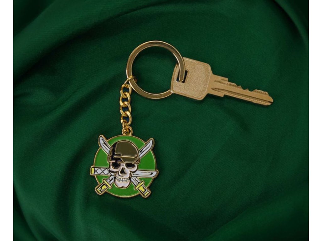 Zelený kovový přívěšek na klíče vyvedený v grafice Zorovy lebky. Přívěsek je vhodným dárkem každého menšího i většího piráta.