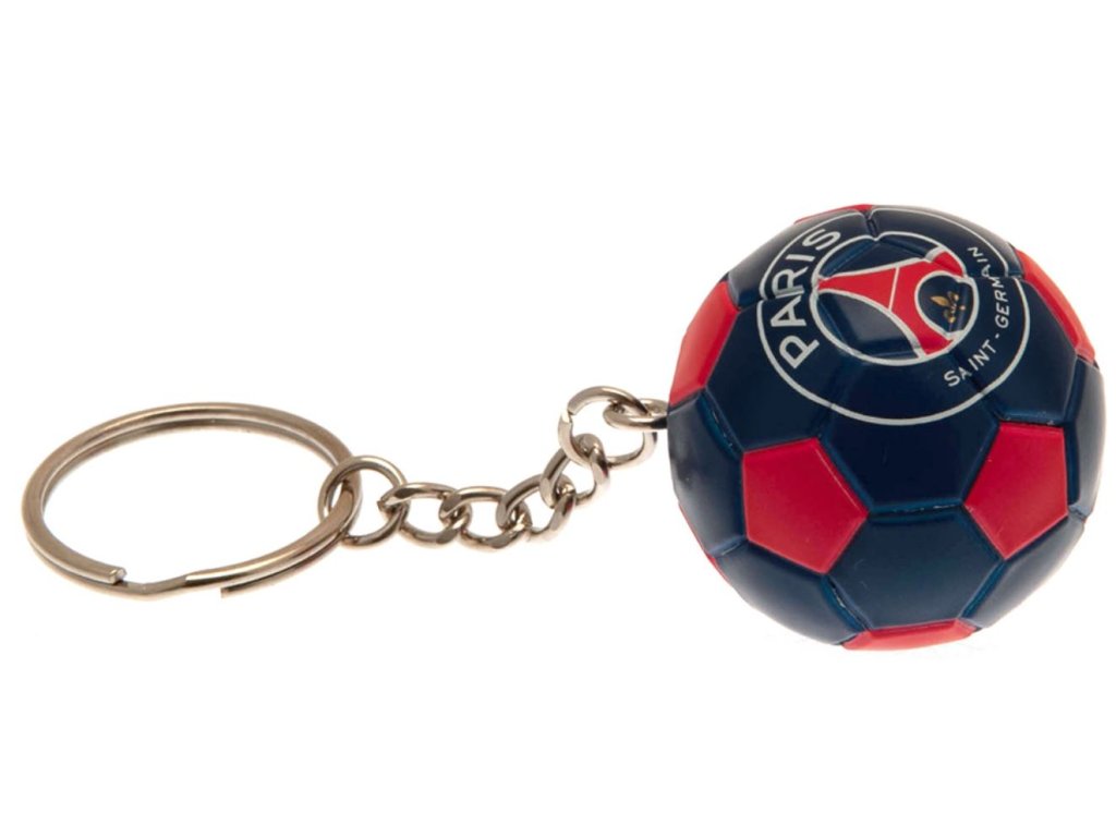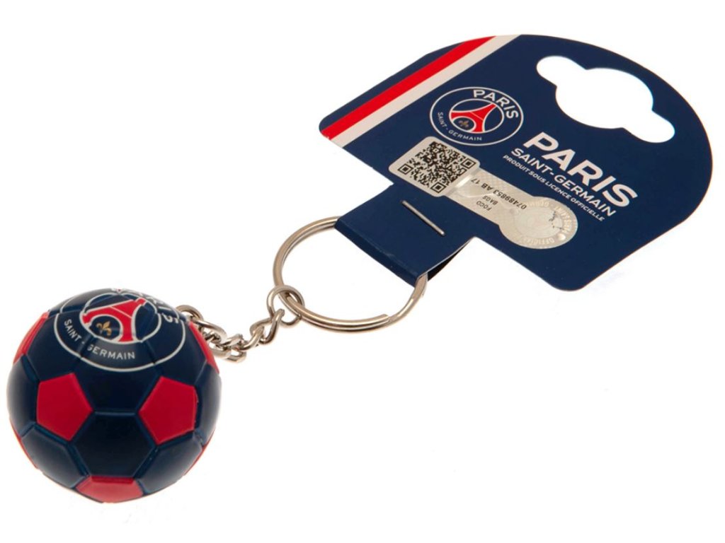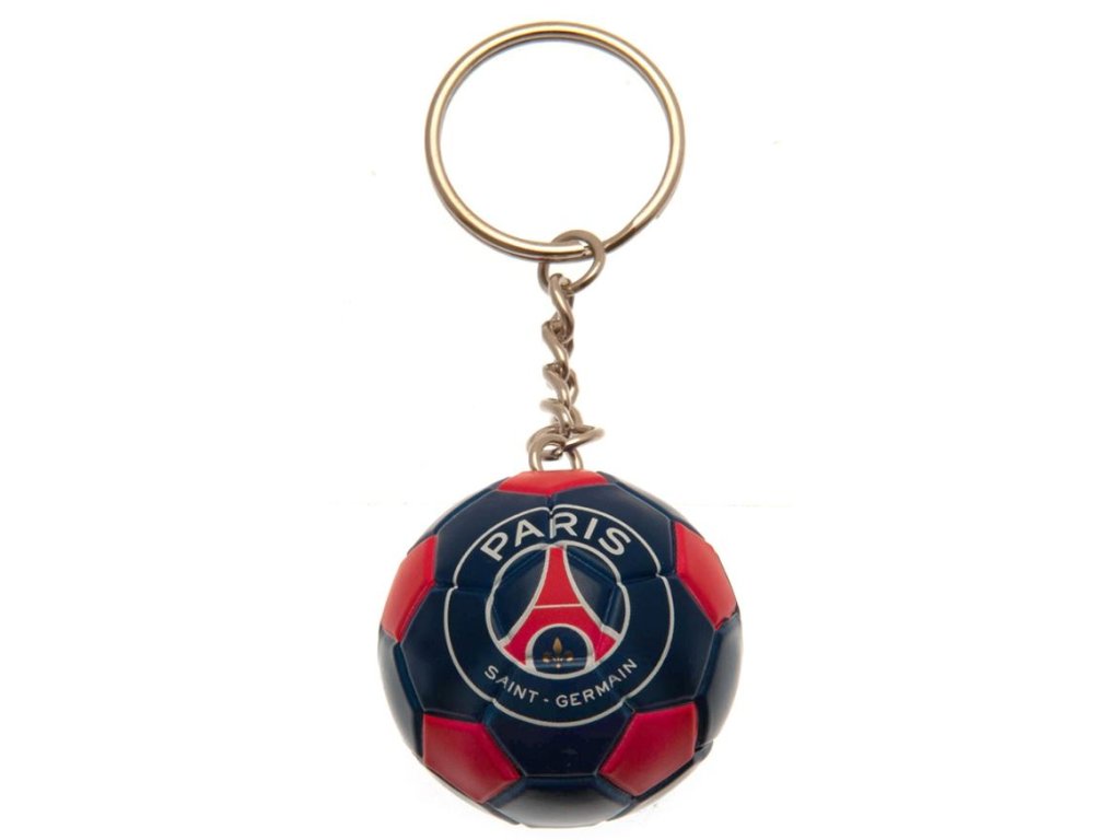 Plastová klíčenka ve tvaru fotbalového míče s řetízkem a děleným kroužkem. Jasné, barevné a vysoce detailní provedení. Ideální pro připevnění na klíče, tašky, opasky a další předměty. Klíčenka vyvedená v grafice znaku fotbalového klubu Paris SG FC se hodí pro každého menšího i většího fanouška francouzského fotbalového klubu.