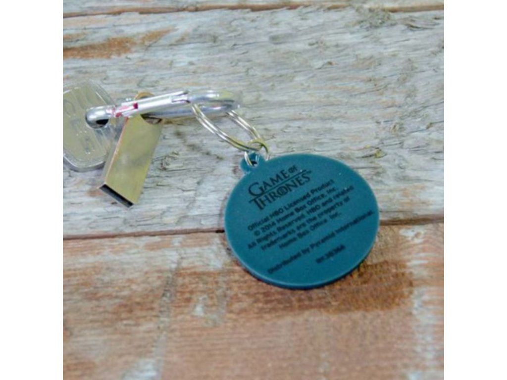 Oficiální přívěsek z katalogu produktů s logem, fotografiemi a grafikou populárního amerického fantasy dramatického seriálu Game of Thrones.