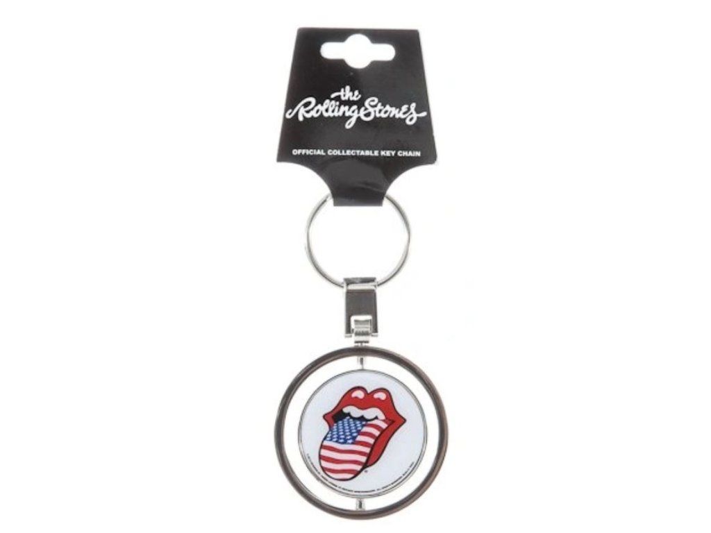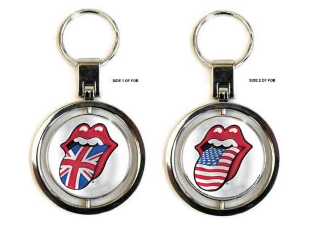 Oficiální produkt - přívěsek na klíče z katalogu výrobků s logem, fotografiemi a grafikou slavné britské rockové skupiny Rolling Stones.