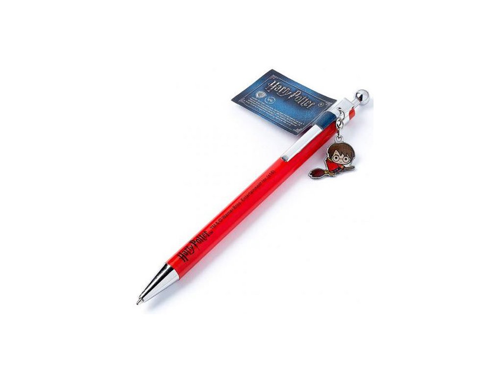 Kovová propiska s grafikou filmové ságy o Harrym Potterovi s přívěškem hlavní postavy Harrym Potterem na letajícím koštěti.