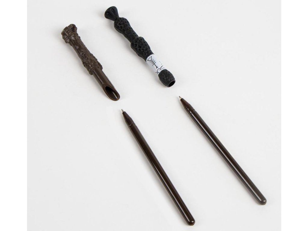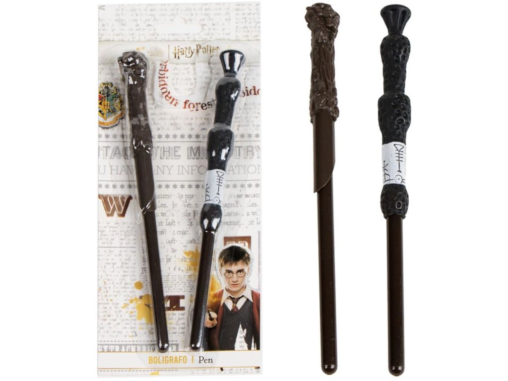 Balení dvou kusů plastových propisek ve tvaru kouzelnických hůlek z magického světa Harryho Pottera. Propisky jsou baleny v dárkovém blistru a jsou vhodným psacím prostředkem každého menšího i většího fanouška této velice oblíbené kouzelnické ságy.