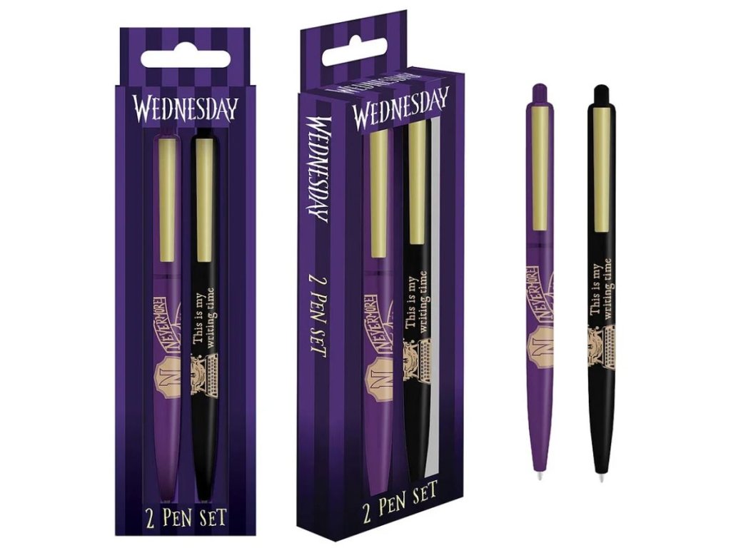 Oficiální produkt - set 2 propisek z katalogu zboží s grafikou a licencí populárního dramatického seriálu Wednesday od společnosti Netflix.