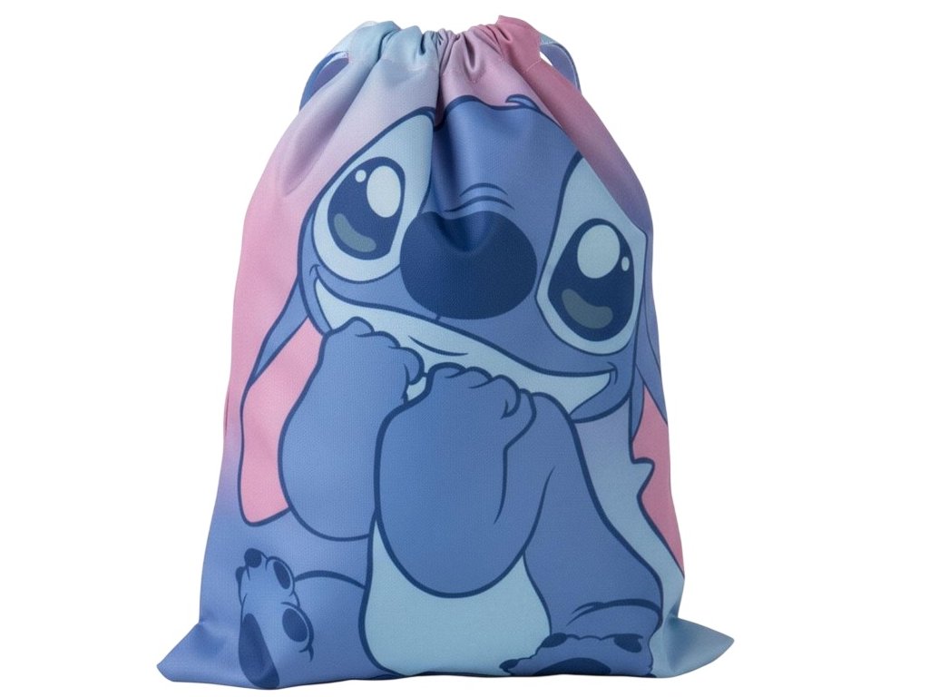 Hledáte praktický a zároveň stylový způsob, jak uskladnit věci do školy nebo na kroužek? Tento lehký stahovací pytlík s motivem Stitche v krásných pastelových tónech si získá srdce každého školáka. Jemný přechod růžové a modré barvy v kombinaci s roztomilou grafikou Stitche dělá z obyčejného vaku módní doplněk. Všestranné využití na přezůvky, cvičební úbor do tělocviku, mokré plavky z bazénu nebo sportovní potřeby na odpolední trénink. Díky pevným šňůrkám se pytlík snadno a rychle uzavře. Šňůrky navíc slouží jako popruhy, takže ho lze nosit jako batůžek na zádech. Nechybí praktické ucho pro snadné přenášení v ruce nebo pro zavěšení na háček v šatně či u lavice. Vyroben ze 100% polyesteru, který je lehký, snadno se čistí a rychle schne. Udělejte svému školákovi radost doplňkem, který ho bude bavit!