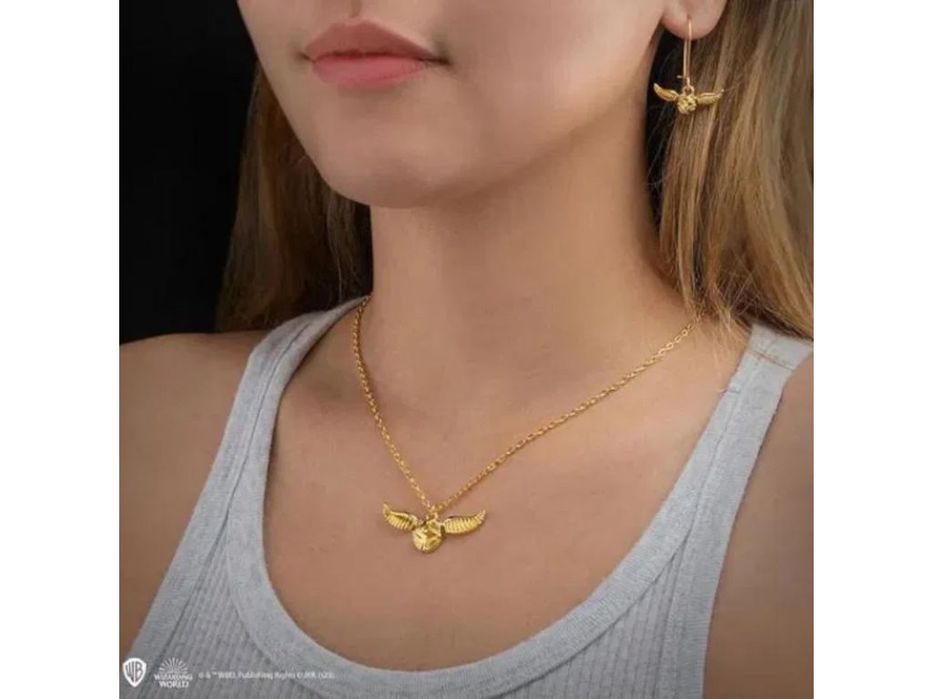 Atraktivní řetízek na krk s přívěškem ve tvaru malého okřídleného kouzelného zlatého míčku: Zlatonky (Golden Snitch) z kouzelnického sportu Famfrpálu v knihách a filmech Harryho Pottera. Během zápasu poletuje mezi hráči a jejím chycením zápas končí. Mužstvo, které Zlatonku chytí, získá navíc 150 bodů. To je ovšem obtížné vzhledem k tomu, že poletuje velmi rychle. Staňte se s tímto přívěskem majitelem Zlatonky a doveďte svůj tým k vítězství!