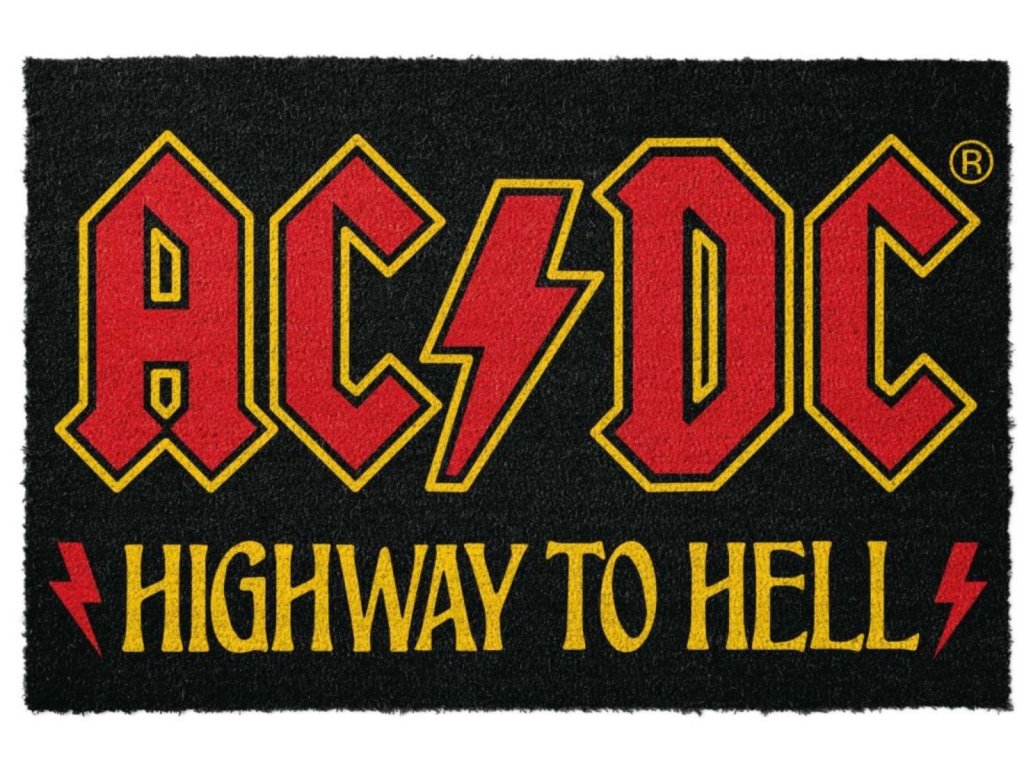 Černá rohožka vyvedená v motivu loga australské hudební skupiny AC/DC a nápisem Highway to hell. Tato rocková rohožka bude slušet každým vchodovým dveřím a je nutností pro každého fanouška této oblíbené hudební skupiny.