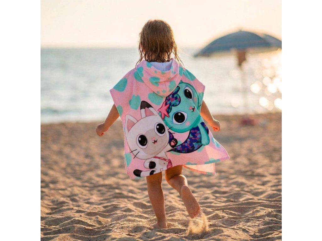 Oficiální produkt - dětský ručník-pončo z katalogu dárkových výrobků s grafikou a licencí populárního seriálu Gabby's Dollhouse.