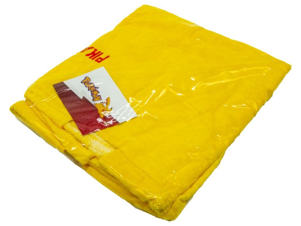 Velká žlutá osuška vyvedená jako pončo v grafice bleskového pokémona jménem Pikachu. Pončo je vhodným dárkem pro každého menšího i většího fanouška.