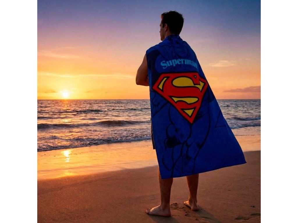 Udělejte z koupání, návštěvy bazénu nebo dovolené u moře ještě větší zábavu! Tato velká, modrá osuška s ikonickým znakem Supermana, dodá každému koupání náboj nefalšovaného dobrodružství. Maximální pohodlí z kvalitního materiálu, který je rychloschnoucí, výborně saje vodu a je velmi příjemný na dotek. Díky velkorysým rozměrům se do ní pohodlně zabalíte po horké vaně, ale skvěle poslouží i jako plážová osuška, na které vás nikdo nepřehlédne. Vybavte se silou superhrdinů na příští dovolenou nebo do domácí koupelny!