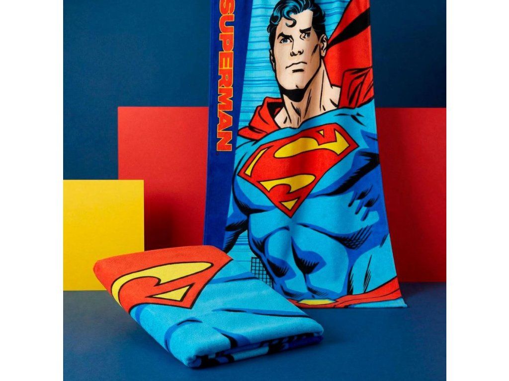 Oficiální produkt - dětská osuška z katalogu výrobků s grafikou, fotografiemi a licencí komiksového superhrdiny Superman od komiksové společnosti DC.