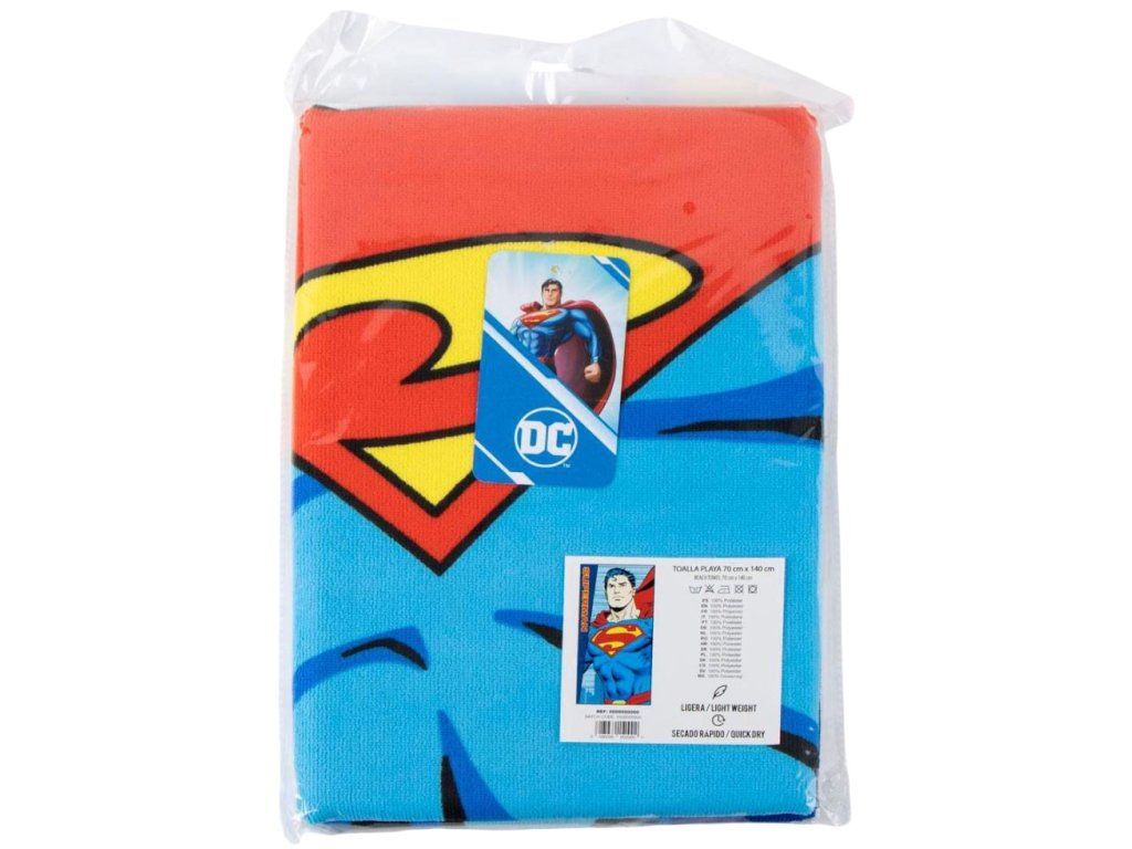 Udělejte z koupání, návštěvy bazénu nebo dovolené u moře ještě větší zábavu! Tato velká, barevná osuška s ikonickým hrdinou Supermanem, dodá každému koupání náboj nefalšovaného dobrodružství. Maximální pohodlí z kvalitního materiálu, který je rychloschnoucí, výborně saje vodu a je velmi příjemný na dotek. Díky rozměrům 70 x 140 cm se do ní pohodlně zabalíte po horké vaně, ale skvěle poslouží i jako plážová osuška, na které vás nikdo nepřehlédne. Vybavte se silou superhrdinů na příští dovolenou nebo do domácí koupelny!
