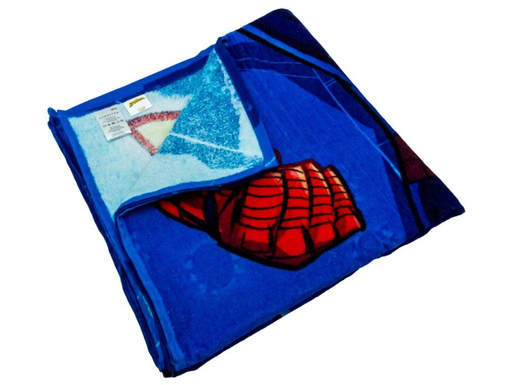 Velká modrá osuška vyvedená s grafikou superhrdiny Spidermana, připraveného na akci. Ručník je vhodným dárkem pro každého menšího i většího fanouška.