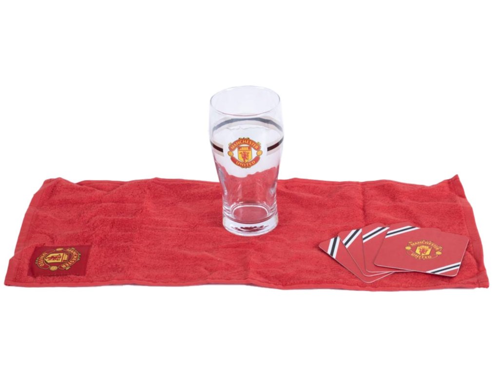 Perfektní dárek pro každého fanouška Manchester United! Tato stylová mini barová sada obsahuje vše, co potřebujete pro domácí zápasovou atmosféru - od půllitru po podtácky a utěrku, vše s oficiálním klubovým znakem.