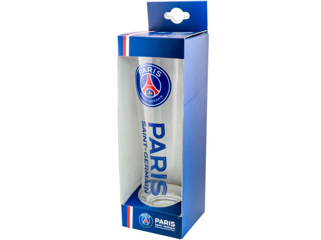 Oficiální produkt - štíhlá sklenice a doplňkové zboží z katalogu výrobků s grafikou a licencí slavného fotbalového klubu FC Paris Saint Germain.