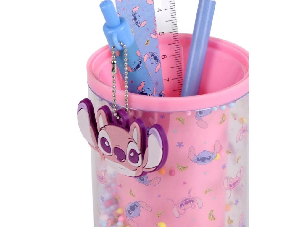 Potřebujete vybavit malého školáka nebo hledáte dokonalý dárek, který vykouzlí úsměv na tváři? Tento roztomilý set školních pomůcek s motivem rozverné Angel a Stitche z pohádky Lilo & Stitch je přesně to, co hledáte! Všechny doplňky jsou úhledně naskládány ve stojánku ve stejném designu, takže budou vždy po ruce a v bezpečí - ať už na školní lavici, nebo doma na psacím stolu. S tímto setem bude každé psaní úkolů a poznámek radost! Skvělý dárek pro fanynky a fanoušky Disneyho světa.