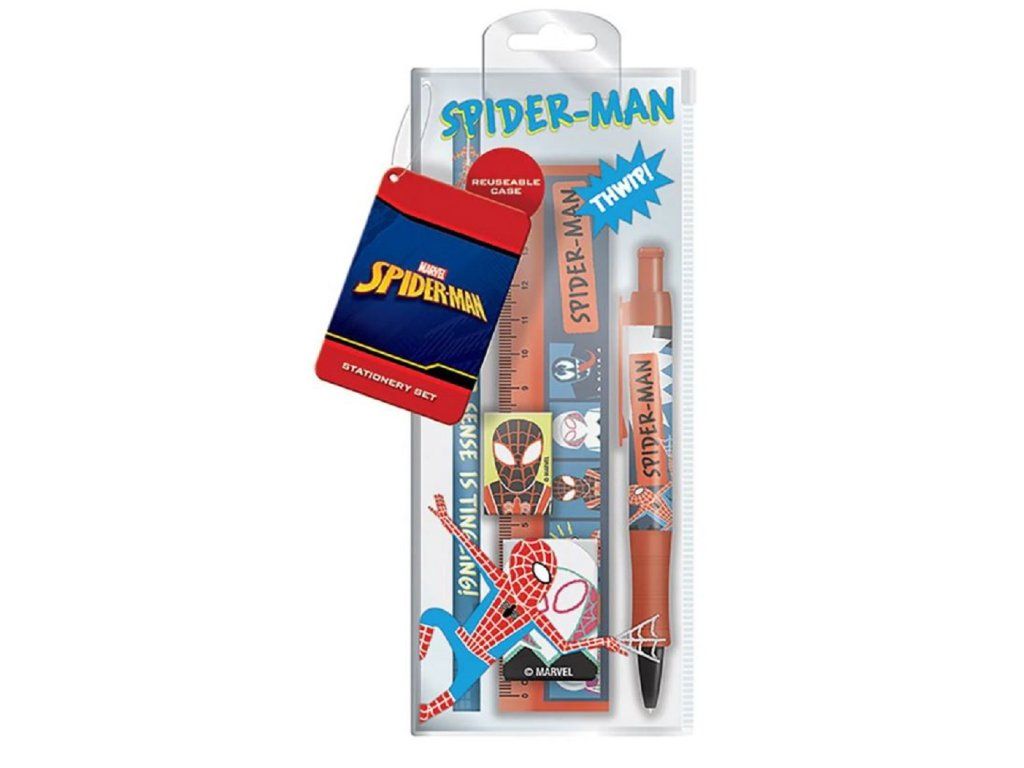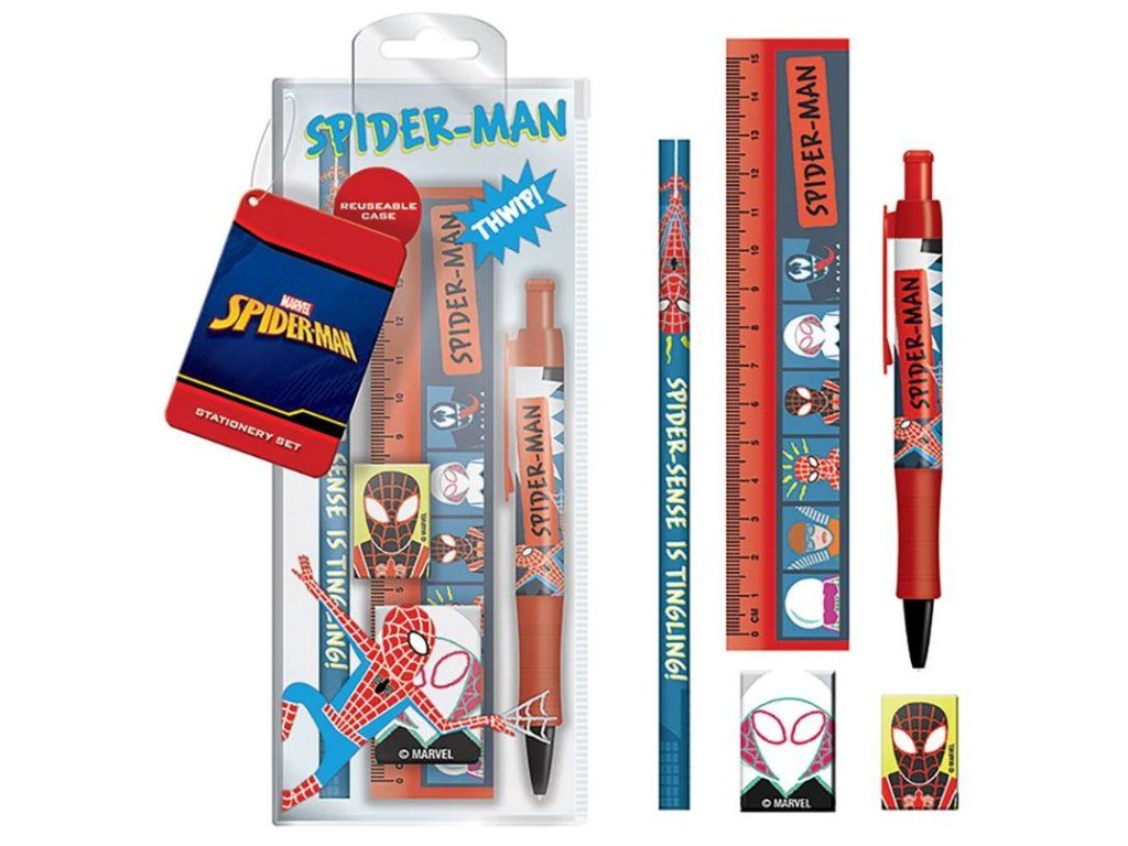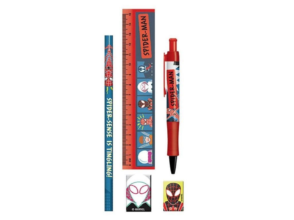 Set 5 školních potřeb s grafikou náčrtu Spidermana.