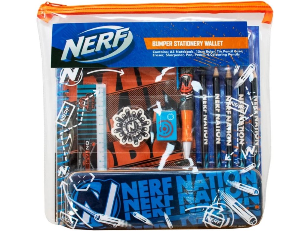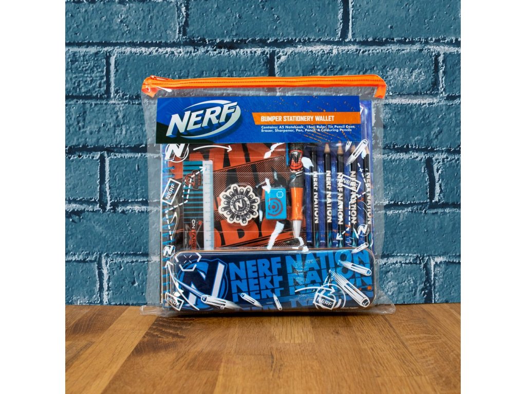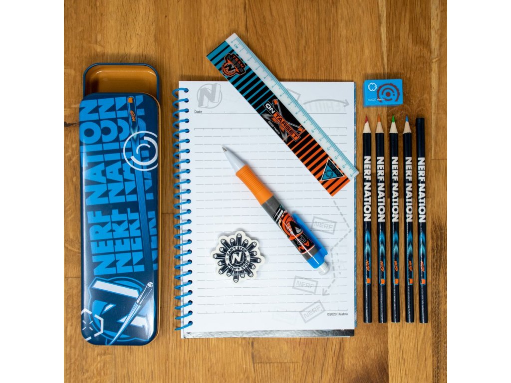 Oficiální produkt, set školních pomůcek z katalogu výrobků s grafikou a licencí výrobce dětských hraček Nerf.
