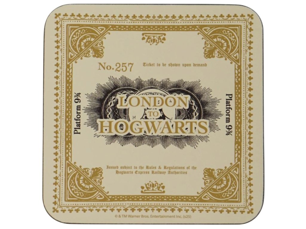 Korkový podtácek s motivem z kouzelnického světa Harryho Pottera potěší každého fanouška magie. Design inspirovaný jízdenkou do vlaku z Londýna do Bradavic dodá každému posezení originální atmosféru. Podtácek je vyroben z korku, který tvoří jeho spodní část a zajišťuje stabilitu i ochranu povrchu stolu. Horní vrstvu tvoří papír s motivem, který je upraven speciální povrchovou úpravou pro vyšší odolnost proti poškození a vlhkosti.