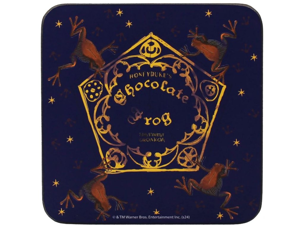 Korkový podtácek s motivem z kouzelnického světa Harryho Pottera potěší každého fanouška magie. Design inspirovaný krabičkou legendární sladkosti Čokoládové žáby dodá každému posezení originální atmosféru. Podtácek je vyroben z korku, který tvoří jeho spodní část a zajišťuje stabilitu i ochranu povrchu stolu. Horní vrstvu tvoří papír s motivem, který je upraven speciální povrchovou úpravou pro vyšší odolnost proti poškození a vlhkosti.