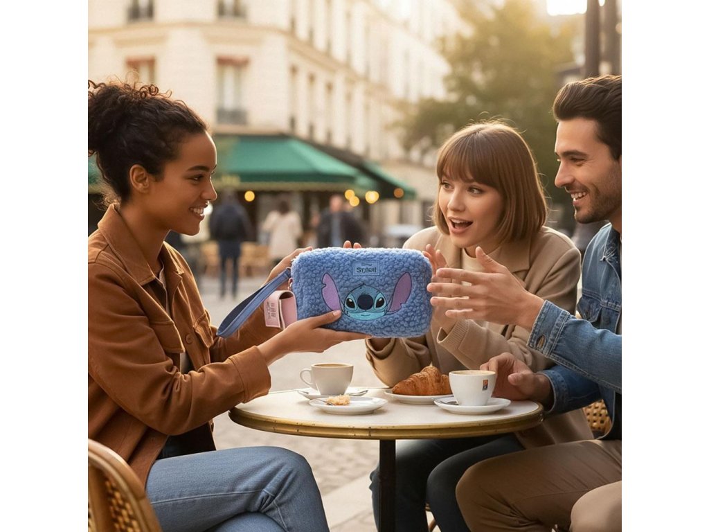 Stylová kosmetická taštička s motivem roztomilé postavičky Stitche potěší každého fanouška oblíbené pohádky Lilo & Stitch. Hebký modrý plyšový povrch dodává taštičce jemný a elegantní vzhled, zatímco výrazná nášivka s motivem Stitche z ní dělá nepřehlédnutelný doplněk.Taštička nabízí jeden prostorný oddíl uzavíratelný na zip s praktickým poutkem na pohodlné přenášení a mini kapsičku na drobnosti. Je ideální na kosmetiku, drobnosti i každodenní nezbytnosti - skvěle se hodí do kabelky, batohu i na cesty.
