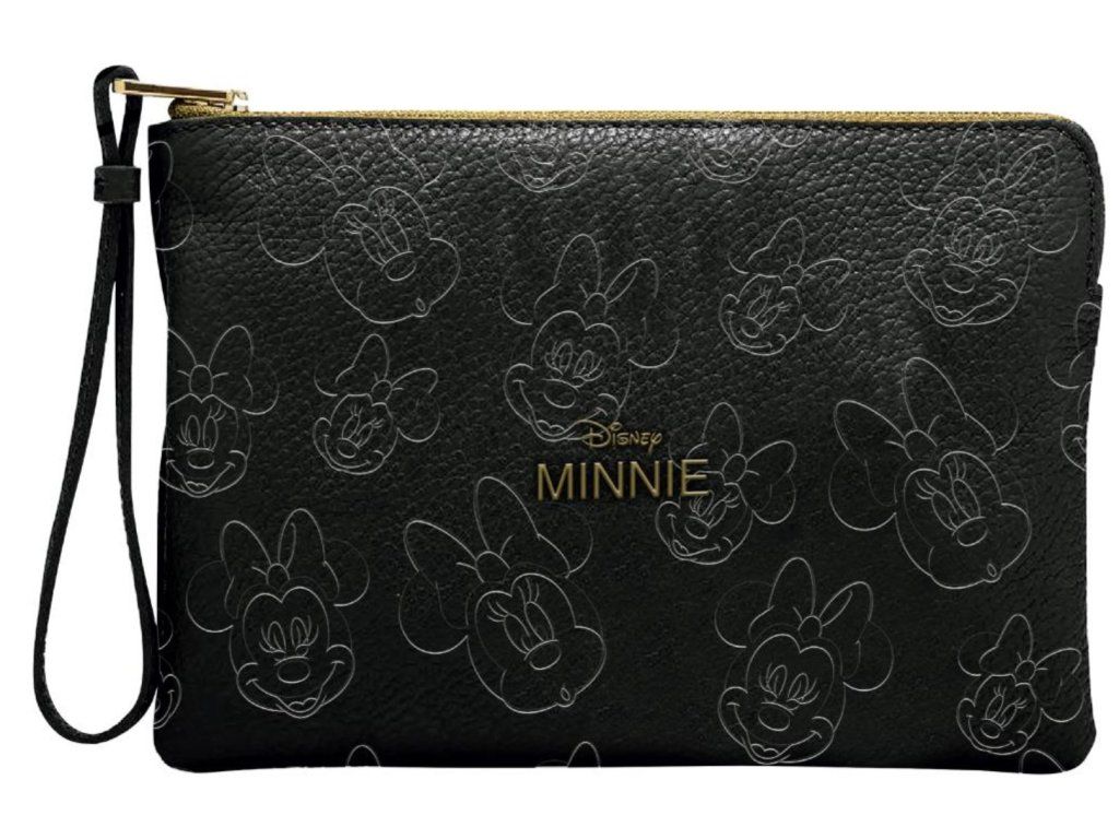 Stylová kosmetická taštička s motivem roztomilé postavičky Minnie mouse potěší každého fanouška oblíbené pohádky Mickey mouse. Kvalitní černý povrch dodává taštičce jemný a elegantní vzhled, zatímco výrazný zlatý nápis Minnie z ní dělá nepřehlédnutelný doplněk.Taštička nabízí jeden prostorný oddíl uzavíratelný na zip s praktickým poutkem na pohodlné přenášení. Je ideální na kosmetiku, drobnosti i každodenní nezbytnosti - skvěle se hodí do kabelky, batohu i na cesty.