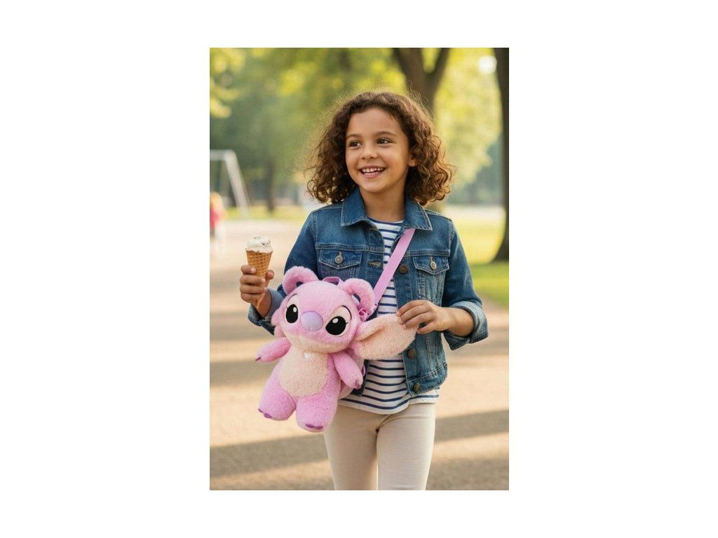 Dodejte dětskému outfitu kapku roztomilosti s touto originální taškou přes rameno, které vévodí 3D postavička Angel z oblíbeného světa Lilo & Stitch. Tato kabelka není jen tak obyčejným doplňkem - díky hebkému plyšovému provedení je na dotek naprosto neodolatelná a okamžitě si ji zamilujete.Taška nabízí jeden oddíl se zapínáním na zip, kam pohodlně uložíte všechny své drobné poklady. Díky délkově nastavitelnému popruhu ji snadno přizpůsobíte dětské postavě, takže je ideální volbou pro nošení na výlety s kamarádkami nebo prostě jen pro radost.