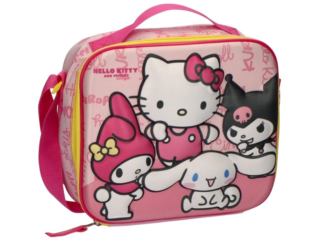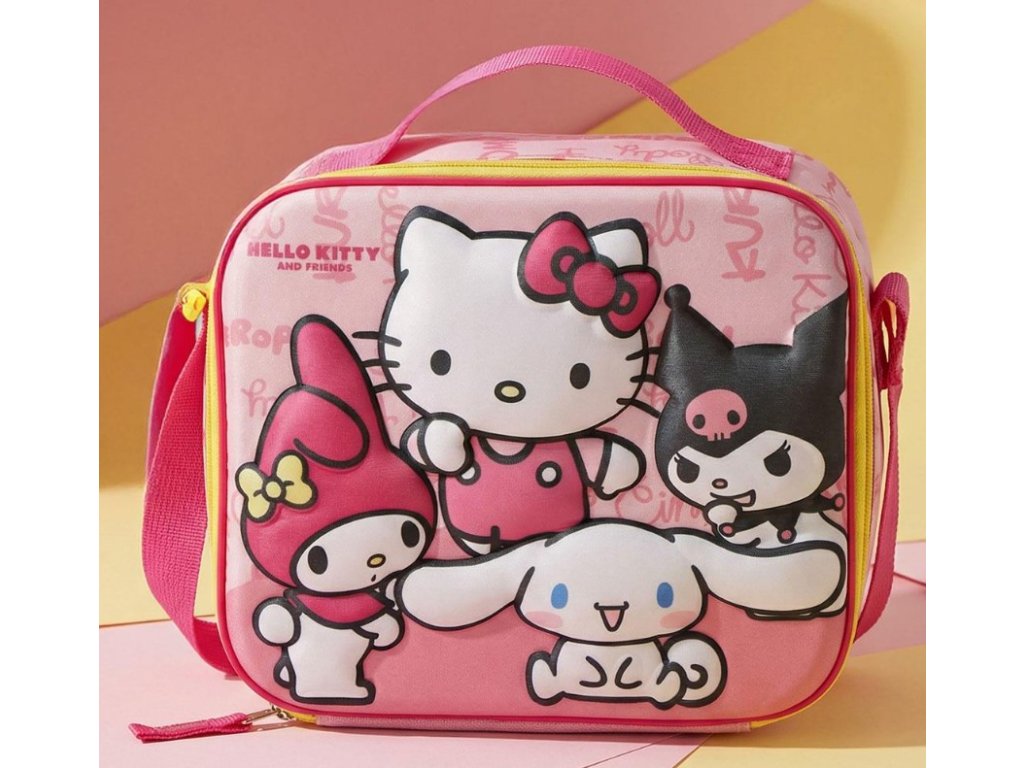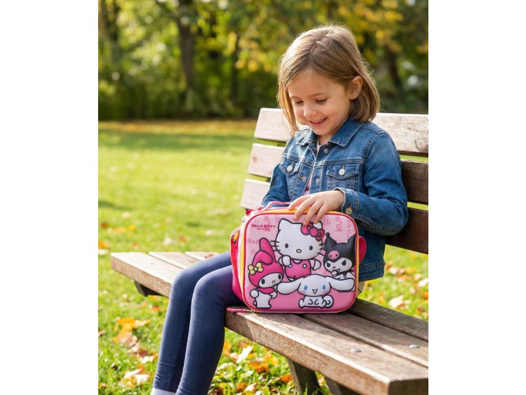 Praktická termo taška na svačinu s roztomilým motivem postaviček ze světa Hello Kitty potěší každého malého fanouška. Výrazná 3D grafika s oblíbenými hrdiny, jako jsou My Melody, Cinnamoroll a Kuromi, dodává tašce hravý a nepřehlédnutelný vzhled. Vnitřní termo vrstva pomáhá udržet potraviny déle čerstvé a v optimální teplotě. Taška má jeden prostorný oddíl uzavíratelný na zip, nastavitelný ramenní popruh i pevné madlo pro pohodlné nošení v ruce. Nechybí ani praktická jmenovka na zadní straně. Ideální volba do školy, školky, na kroužky i výlety.