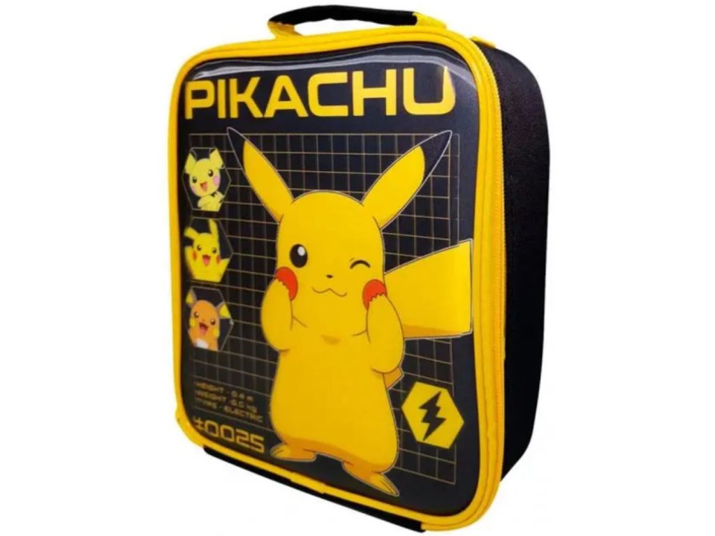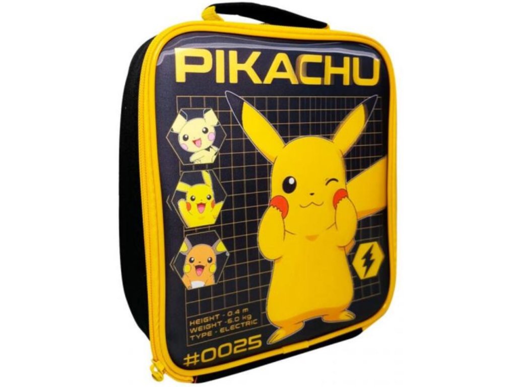 Jednoprostorová černá taška na svačinu se žlutou grafikou hlavního pokémona jménem Pikachu. Taška na svačinu je vhodná pro všechny menší i větší lovce, kteří si chtějí svou svačinku a pití vytáhnout kdekoliv a kdykoliv, i při tom nejtěžším lovu.