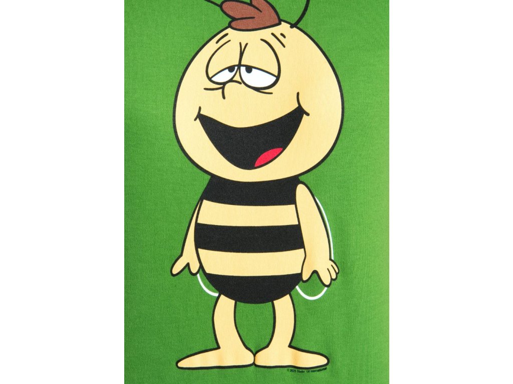 Bavlněné zelené tričko s grafikou Vilíka, kamaráda včelky Máji. Propracovaný, velice odolný sítotisk s použitím vysoce kvalitních inkoustů bez ftalátů. Atraktivní tričko s volným střihem, který se snadno kombinuje s dalšími kousky. Ukažte i vy svůj styl a hravost s tímto stylovým zeleným tričkem s Vilíkem.