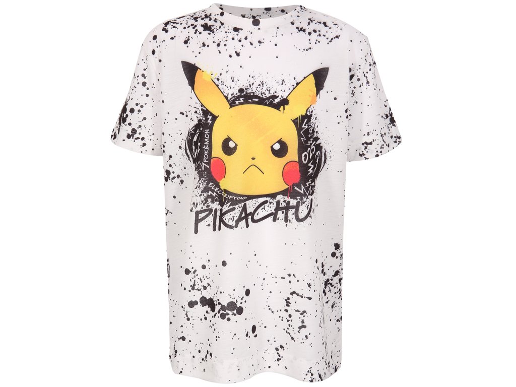 Atraktivní bílé dětské tričko s potiskem hlavního bleskového Pokémona jménem Pikachu. Tričko je vhodné pro všechny fanoušky a lovce Pokémonů.