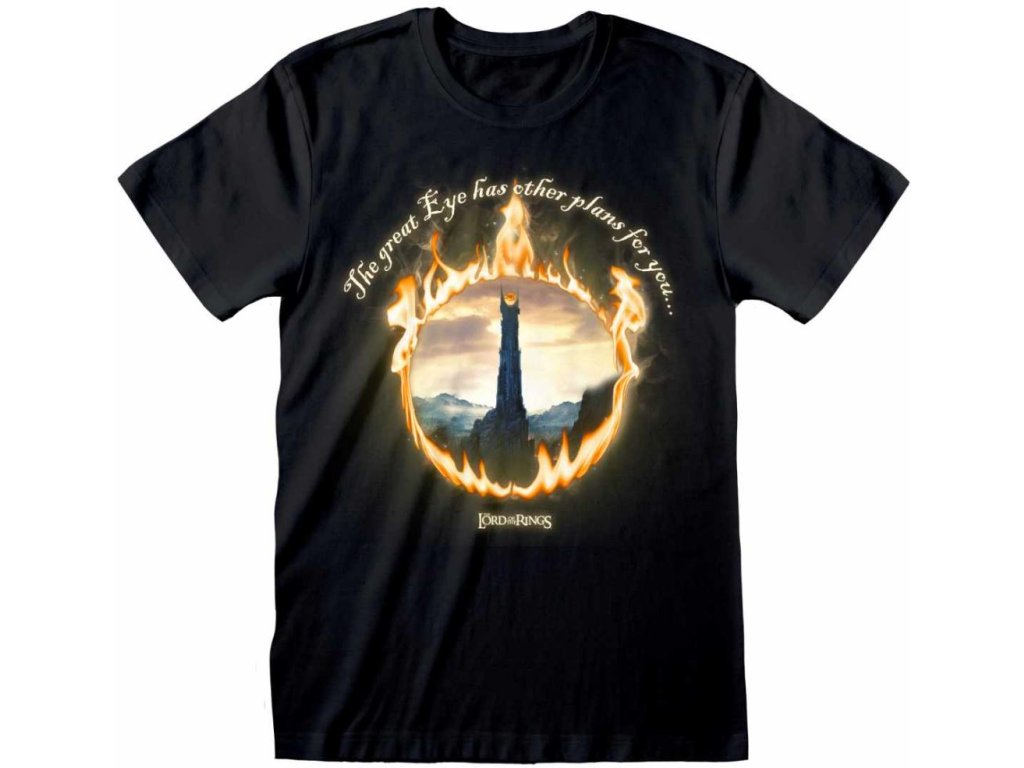 Černé pánské tričko s potiskem Lord of the Rings, motivem Saurons Eye (Sauronovo oko) a nápisem The great Eye has other plans for you...