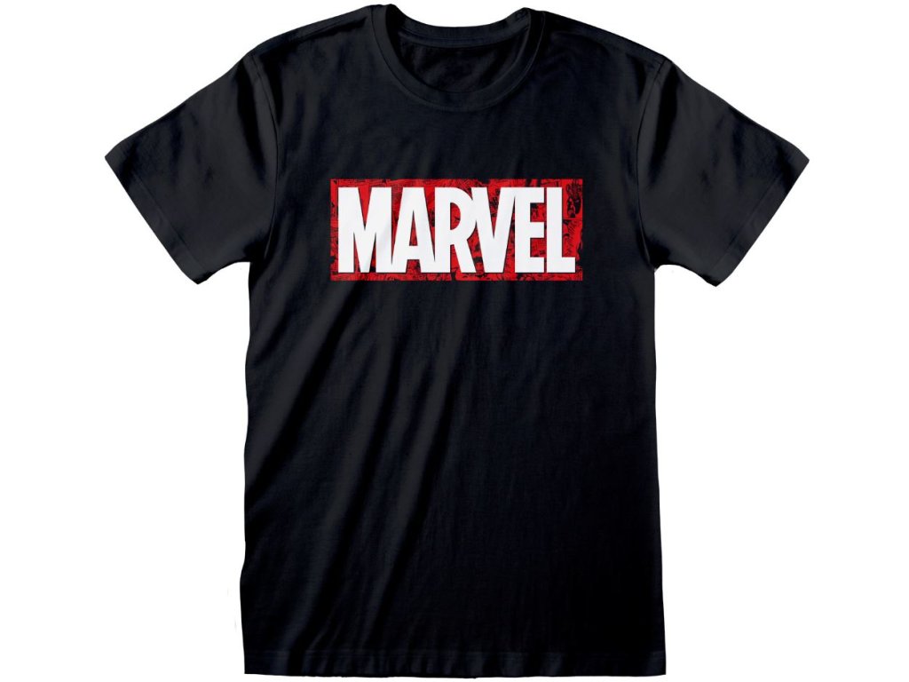 Atraktivní černé tričko s krátkým rukávem a hlavním logem Marvel na přední straně.