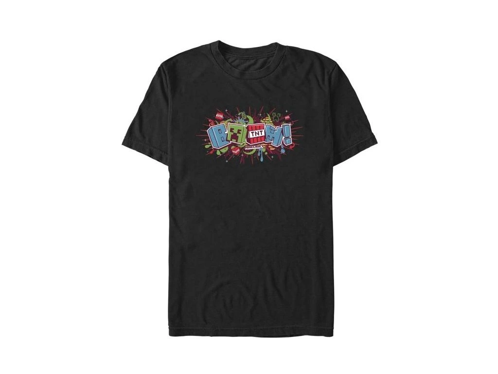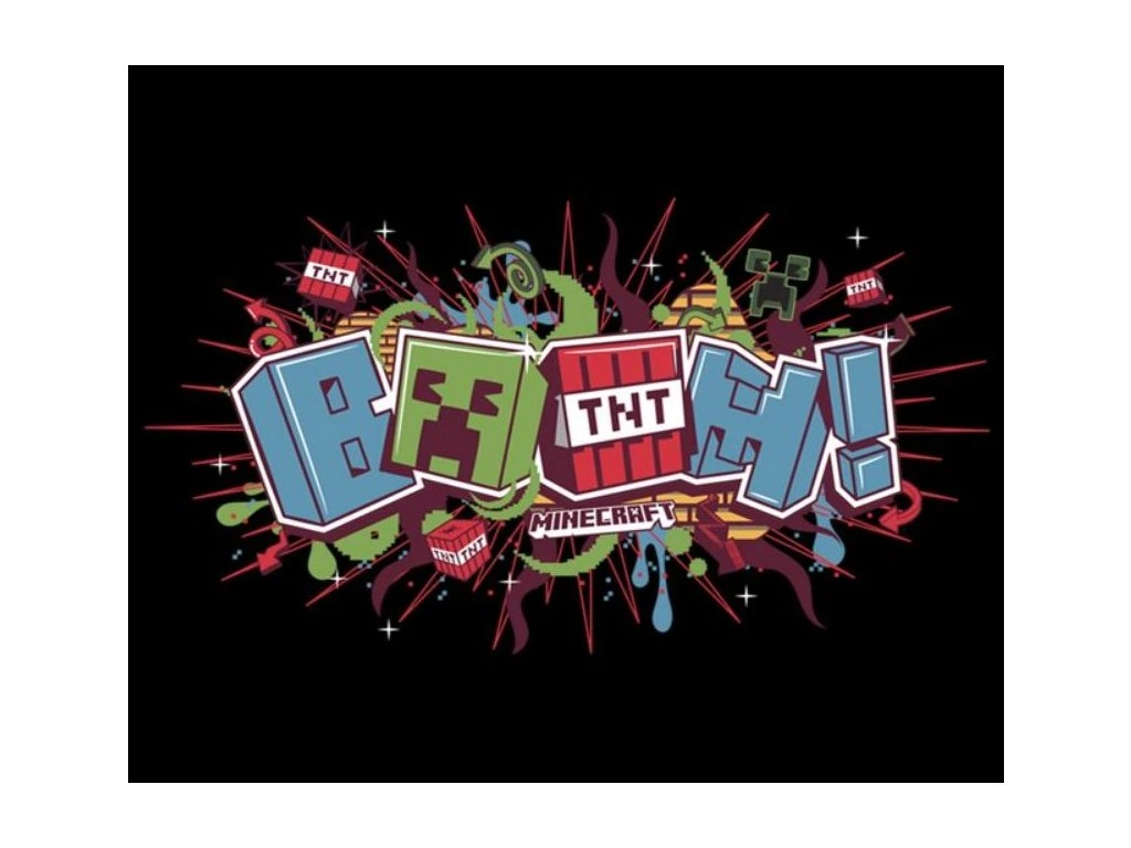 Černé pánské tričko s grafikou Boom Loga z počítačové hry Minecraft. Tričko je vhodným dárkem pro každého fanouška.
