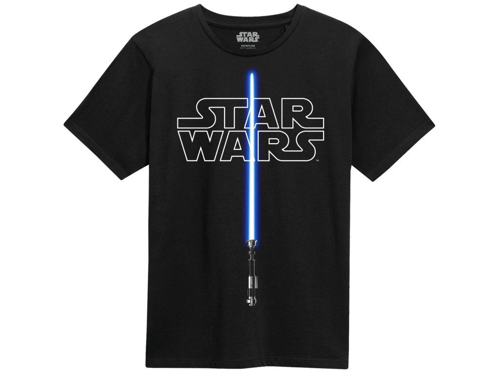 Atraktivní černé tričko s krátkým rukávem s grafikou světelného meče, který svítí ve tmě. Tričko je vhodným doplňkem každého fanouška Hvězdných válek.